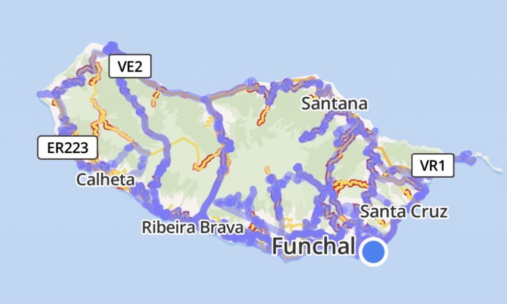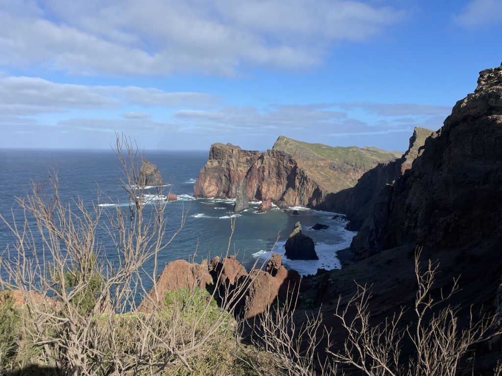 Heute am Montag erkunden wir den Westteil der Insel. Um zügig hinzukommen, müssen wir ab und zu eine kleine Strecke Autobahn durch die Tunnel einschieben. Immer an der Küste entlag bis zum westlichsten Punkt der Insel geht es Kurve an Kurve bis Porto Moniz. Den Rückweg, auch durch einen uralten Lorbeerwald, wählen wir über die Hochebene bis in den Süden mit Stop an der Poncha-Bar.